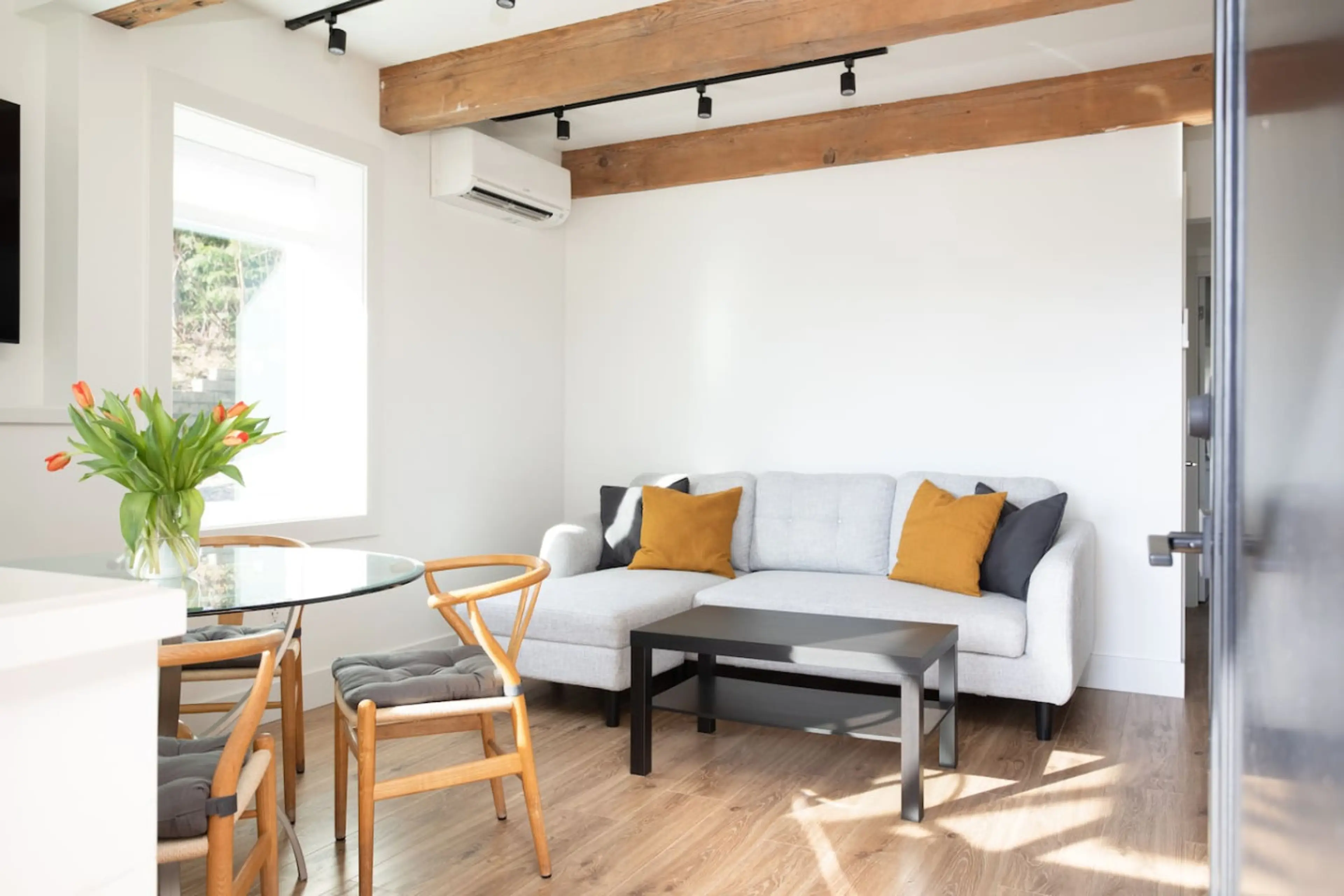 Lovely new condo modern, light, cozy and fun. Large kitchen and dining area with all the amenities. Completely independent and separate unit with its own private walkway, private entrance and patio. Wheelchair accessible. Parking available. Located on .7+ acre, one of the largest private properties...